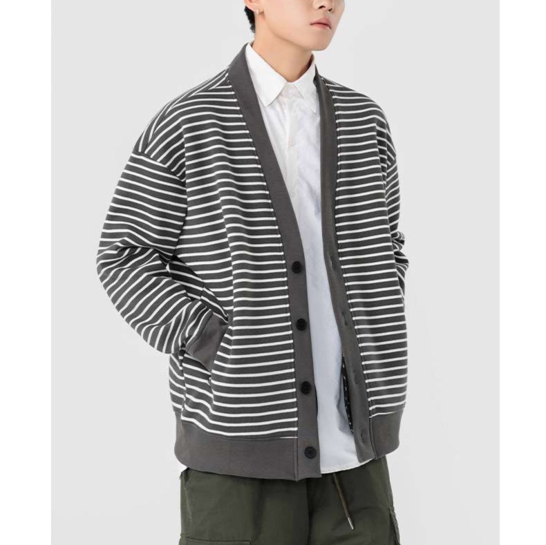メンズのゆったりオーバーサイズボーダー柄カーディガン