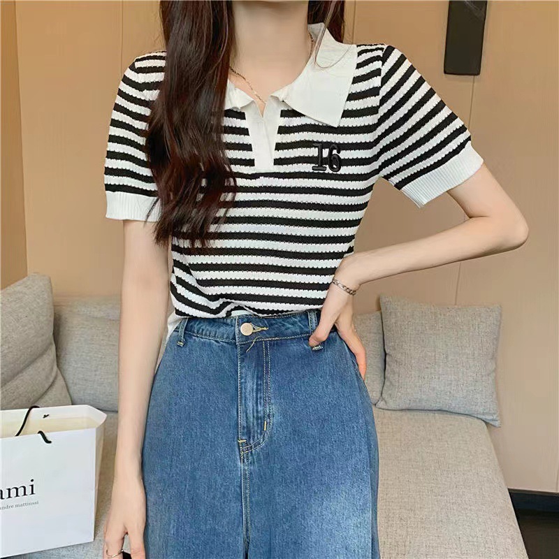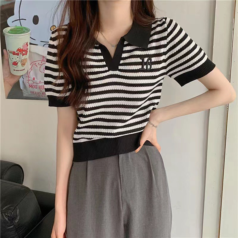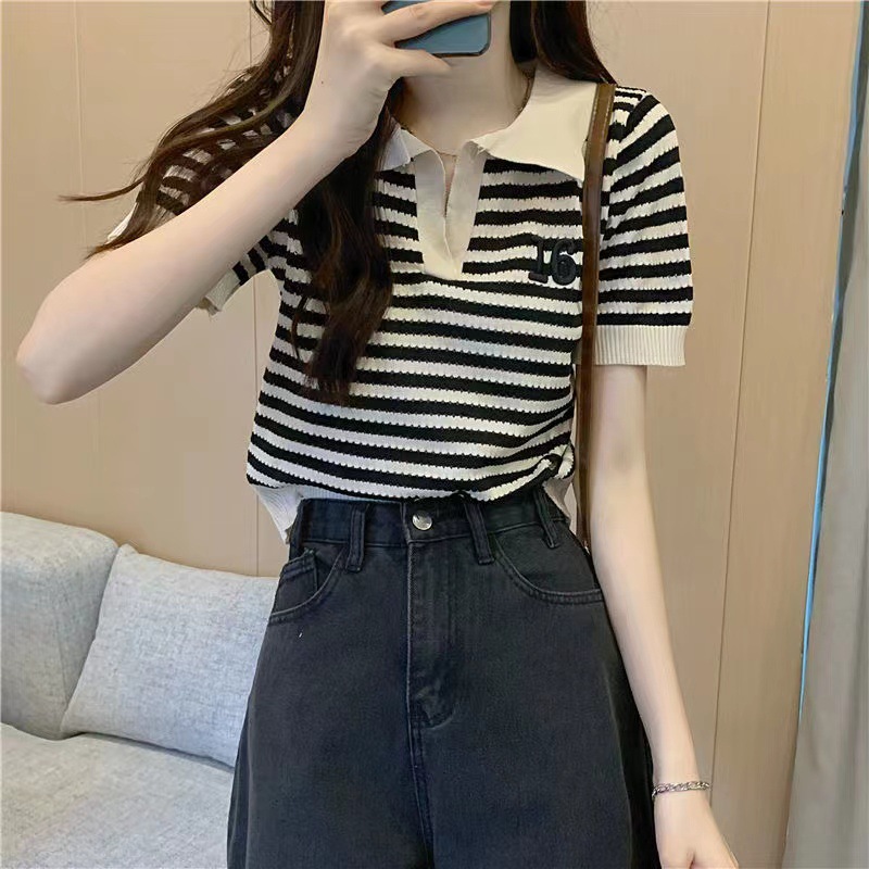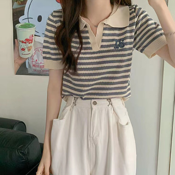 ■コメント ・伸縮性のある薄手の襟付きボーダーニット。 ・ボーダー柄がポップで可愛いです。 ・お顔回りがシャープに見えるVネックデザイン。 ・クロップド丈がトレンド感を演出し、さまざまなボトムスと相性がいいです。 ■サイズ(単位:約cm) フリー 着丈50cm、バスト42cm、袖丈20cm、(OK) ※平置き採寸の為、1-3cmの誤差がある場合があります。予めご了承下さいませ。 ■カラー 画像に記載 ■裏地 なし ■生地の厚さ 普通 ■透け感 なし ■伸縮性 なし ■素材 ポリエステル95%、ポリウレタン5%