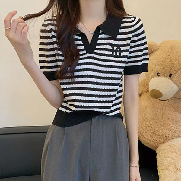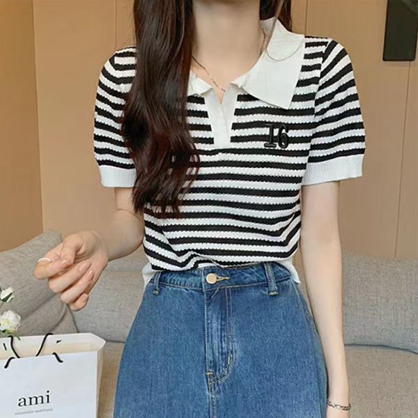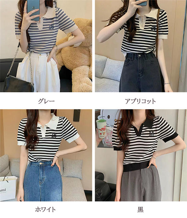 上品な襟元とボーダー柄で、きれいめカジュアルコーデにぴったりです。