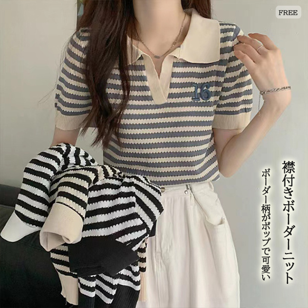 シャツ襟がポイントのカジュアルなボーダーニット。