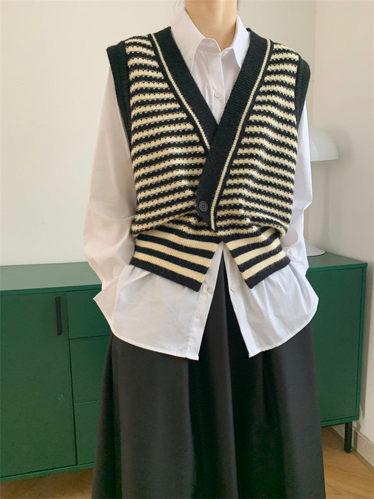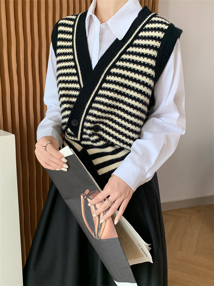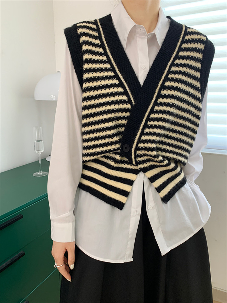 ボーダー服専門店がお届けするレトロな雰囲気のニットベストです。
