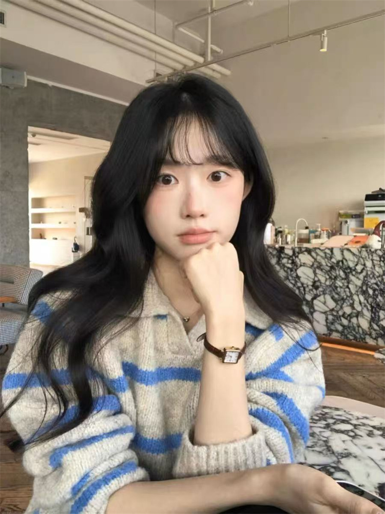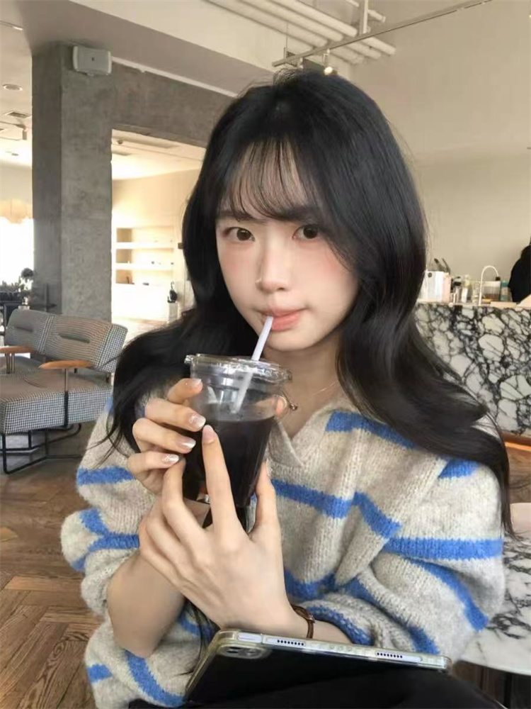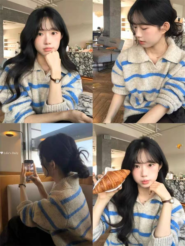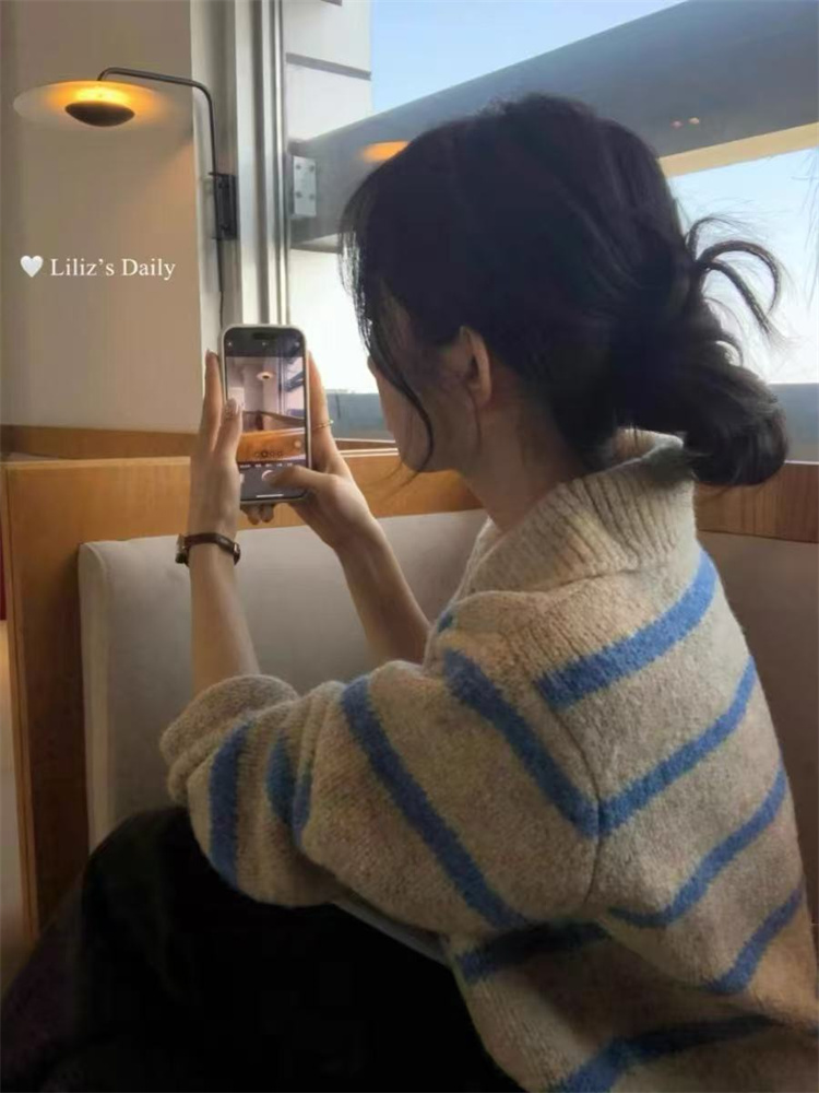 秋冬にぴったりの厚手横縞ニットセーターです。