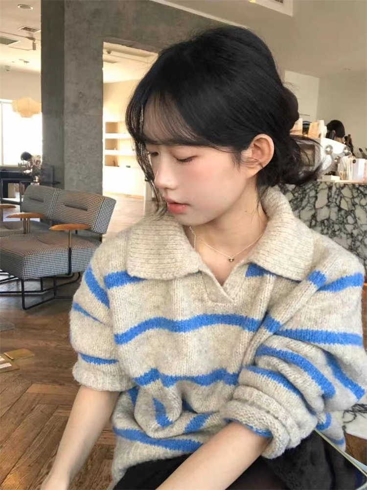 ボーダー服の定番アイテムで、襟付きデザインがおしゃれなアクセント。