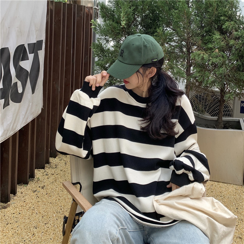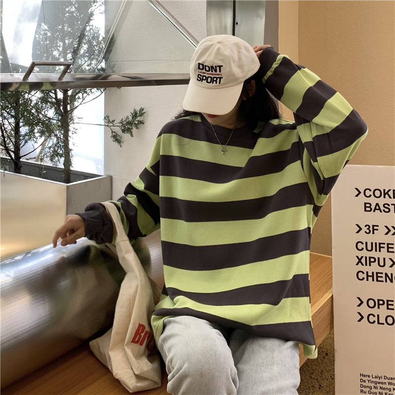 リラックス感たっぷりのゆるっと大きめボーダー長袖カットソーです。