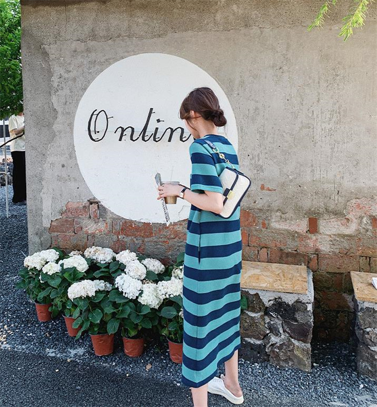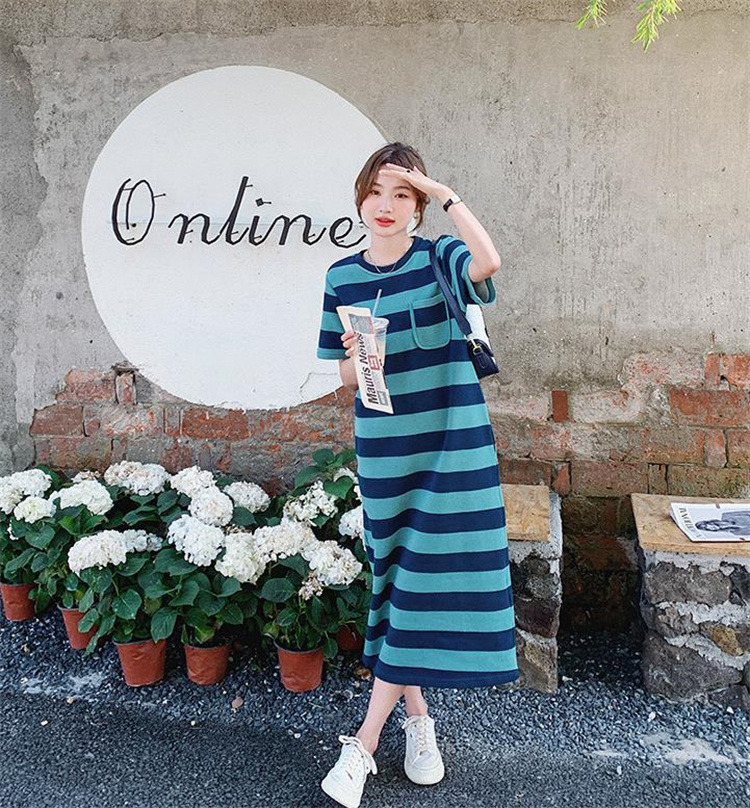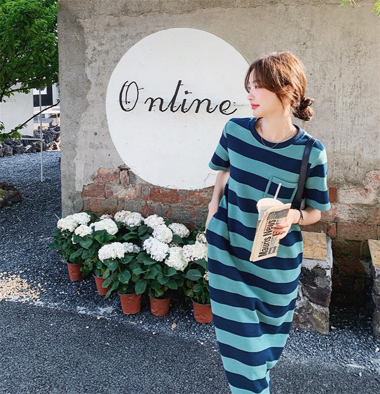 ボーダー服の定番デザインで大人気のカジュアルワンピース。