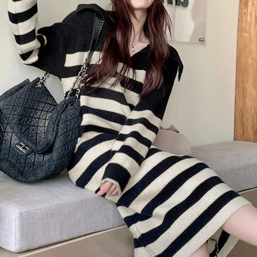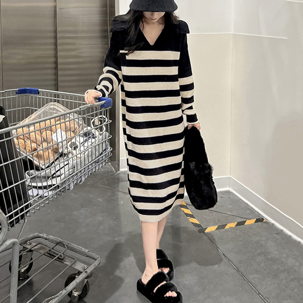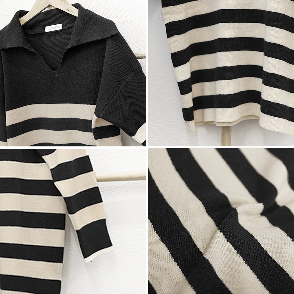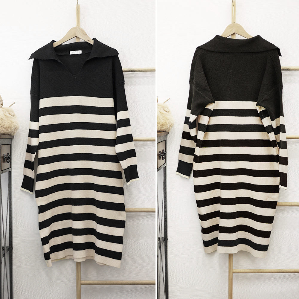 ボーダー服専門店の人気アイテム、黒白ストライプが上品なニットワンピース