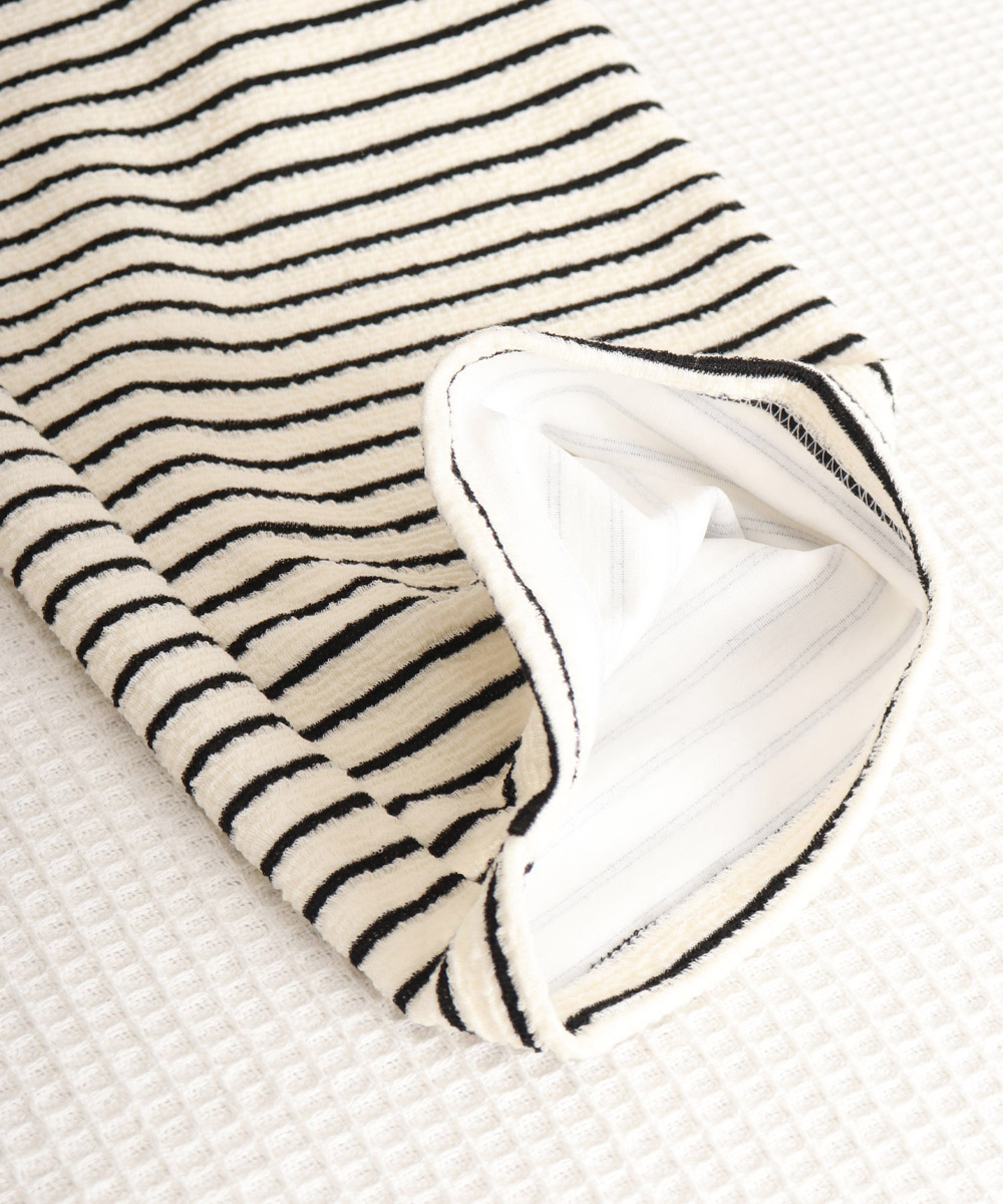 落ち着いたボーダー配色で、ラフになりすぎず、きれいめにも着こなせる大人カジュアルなデザイン。
