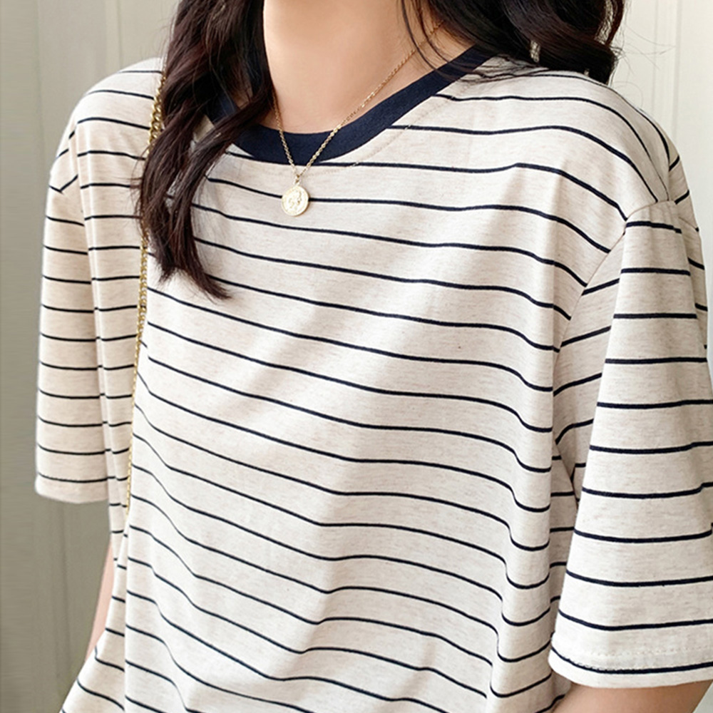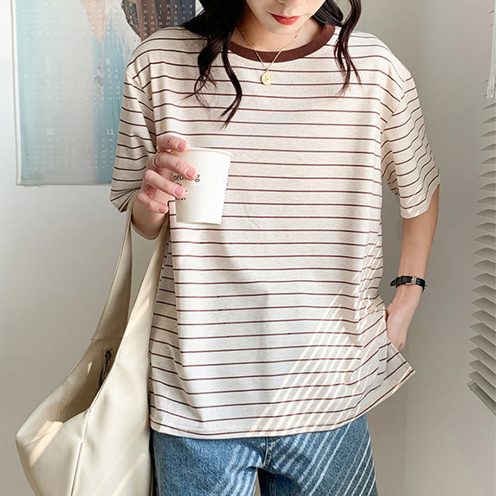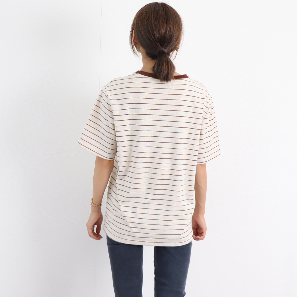 太すぎないボーダー柄でカジュアルすぎず、女性らしく着こなせます。