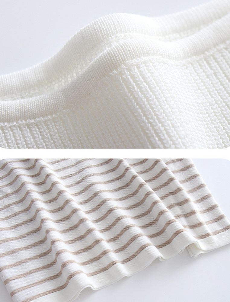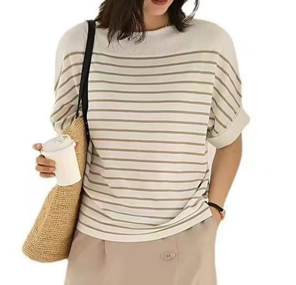 ゆったりとした袖が体型をきれいにカバーし、ボーダー服の定番として長く愛用いただけます。
